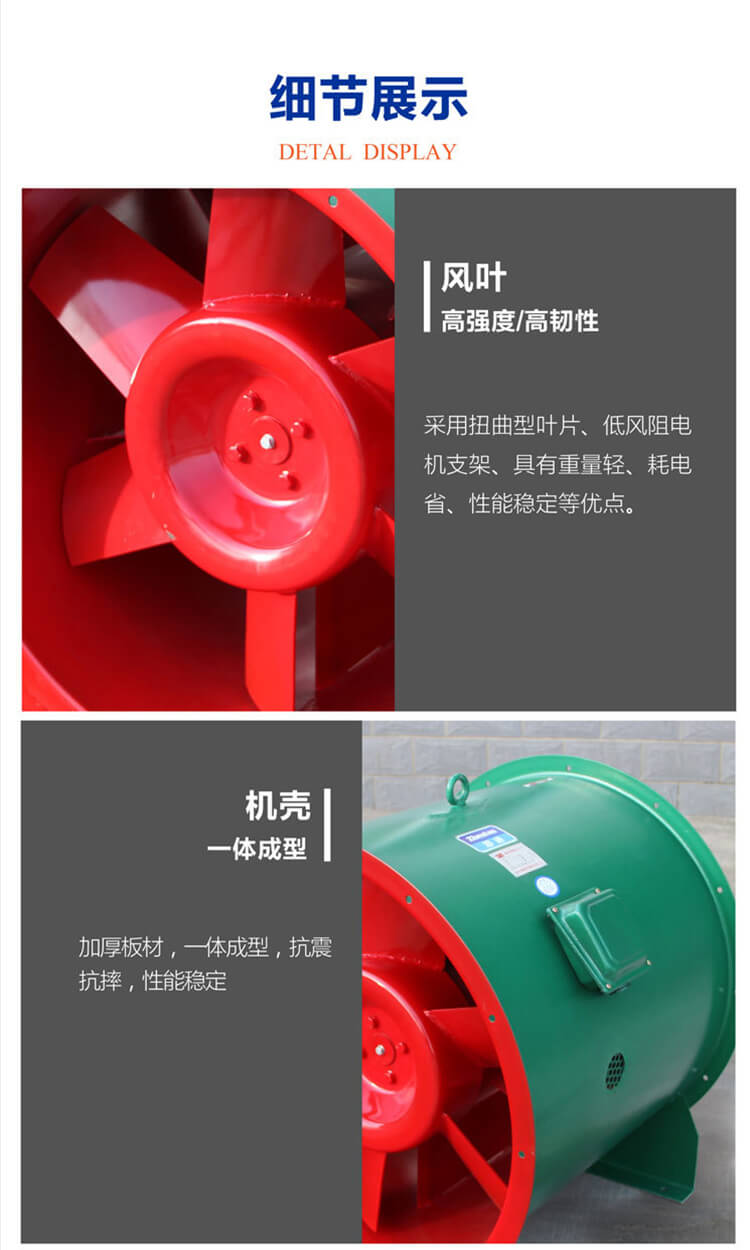 消防排煙風機還廣泛應用于高溫熱氣體的吸進與排放,如冶煉廠熔爐的熱廢氣的引流等,以及需要防火防靜電措施的危險物質存儲庫房等場景。在火災事故中發(fā)揮著至關重要的作用。