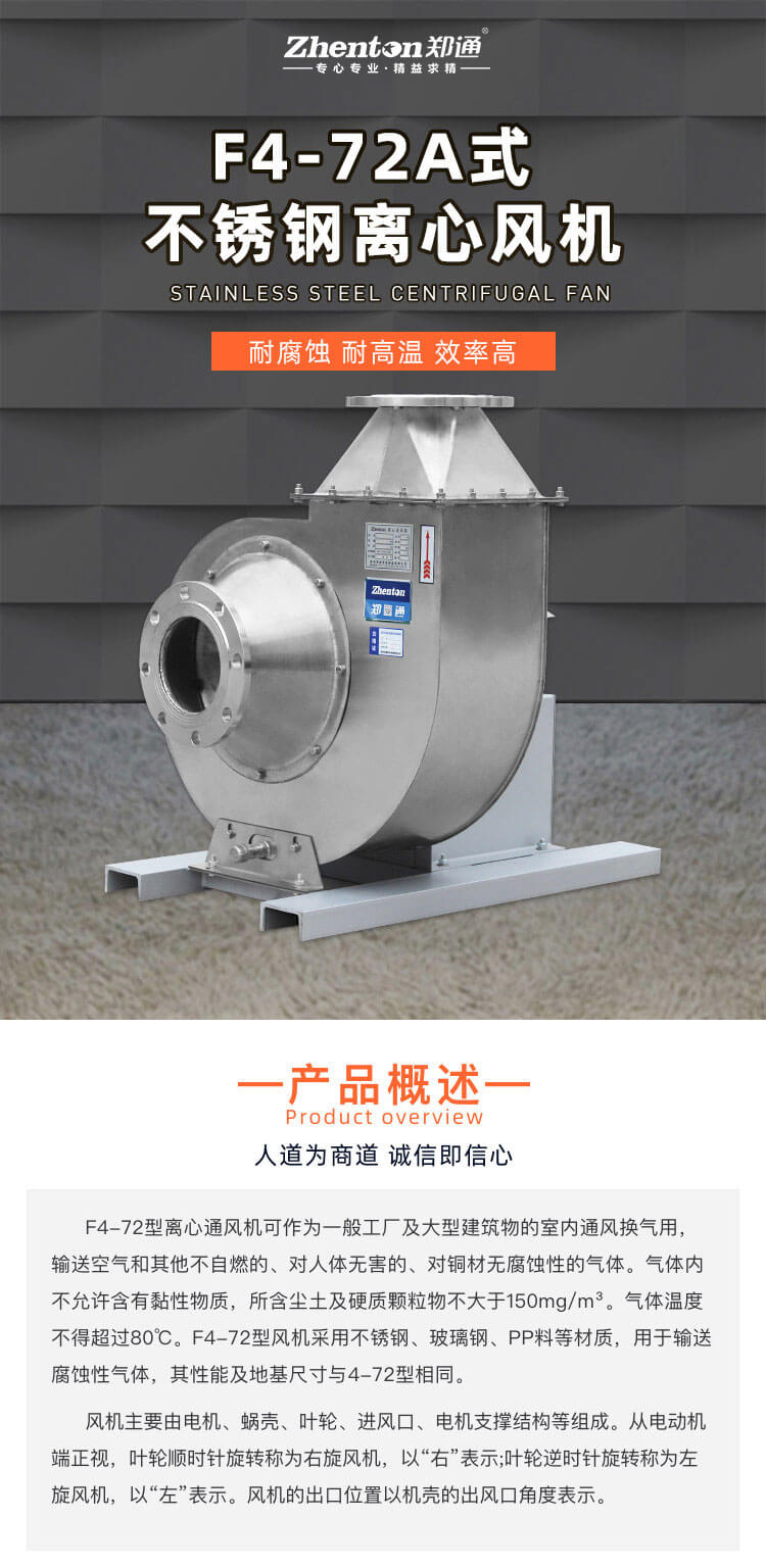 不得超過80°C。F4-72型風(fēng)機(jī)采用不銹鋼、玻璃鋼、PP料等材質(zhì),用于輸送