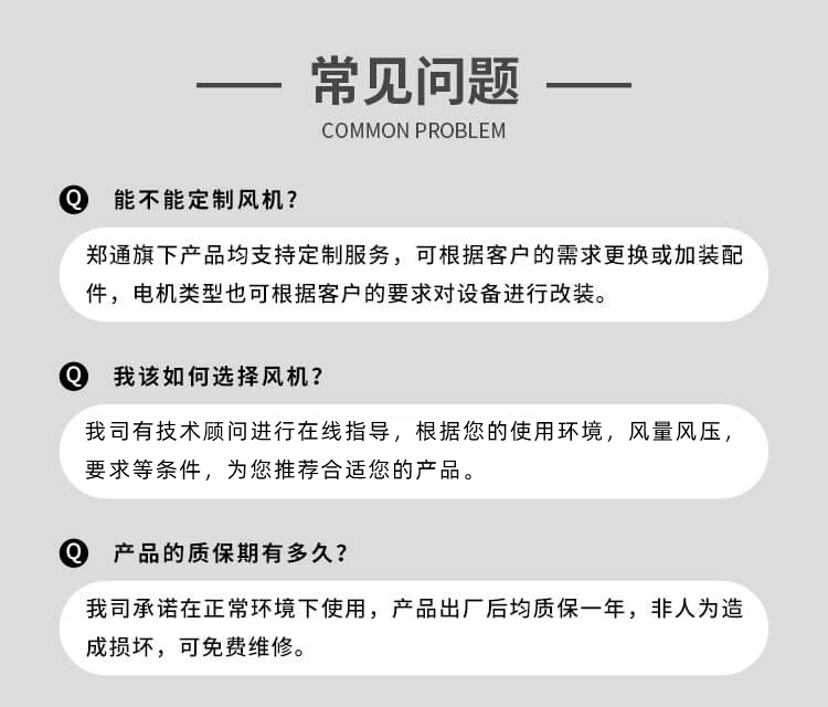 一般作為工廠及建筑物的室內(nèi)通風(fēng)換氣,既可用作輸入氣體,也可用做輸出氣體,對(duì)變風(fēng)量系統(tǒng)更為適用。輸送氣體種類為空氣和其他不自燃的、對(duì)人體無害的氣體。氣體內(nèi)不許有黏性物質(zhì),所含的塵土及硬質(zhì)顆粒物不大于150mg/m3。氣體的溫度不超過80°C。