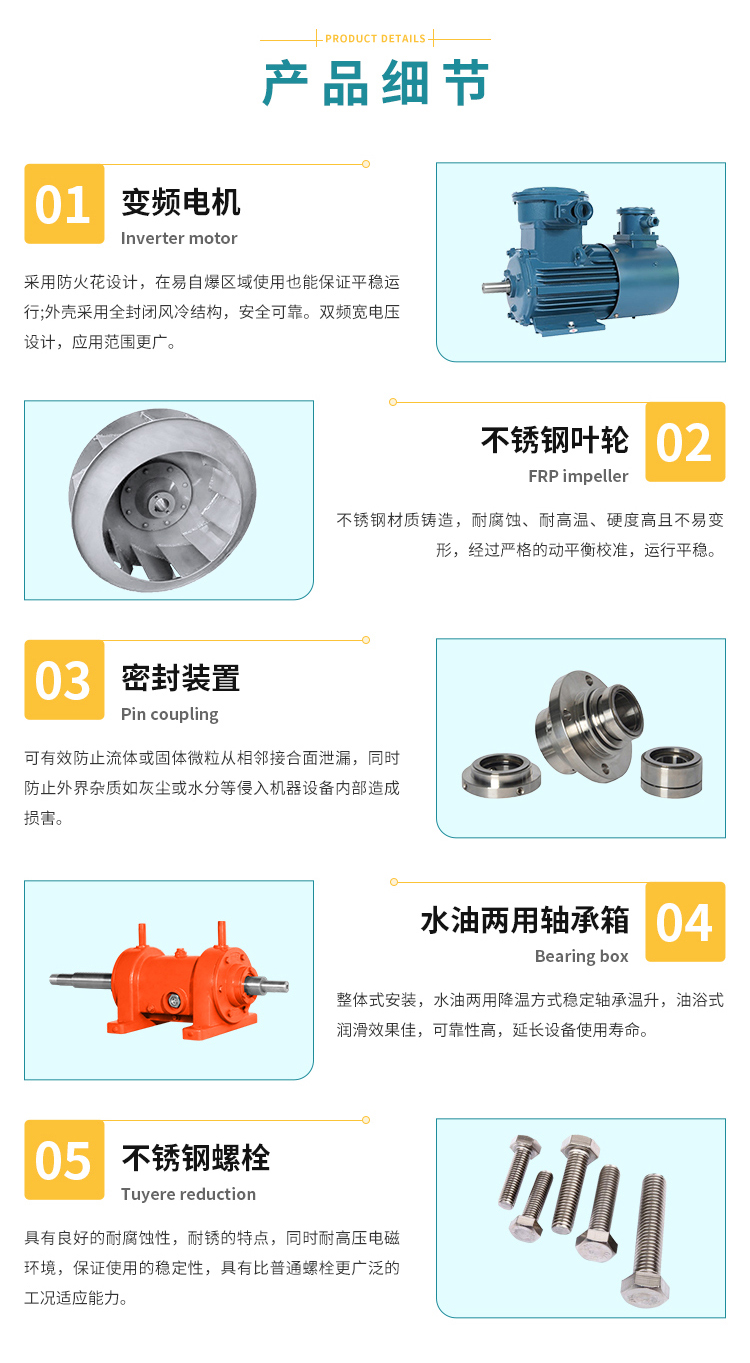 耐高溫、耐銹蝕,具有良好的氣動(dòng)性,運(yùn)轉(zhuǎn)平穩(wěn)、振動(dòng)小、效率高、使用壽命長(zhǎng)。