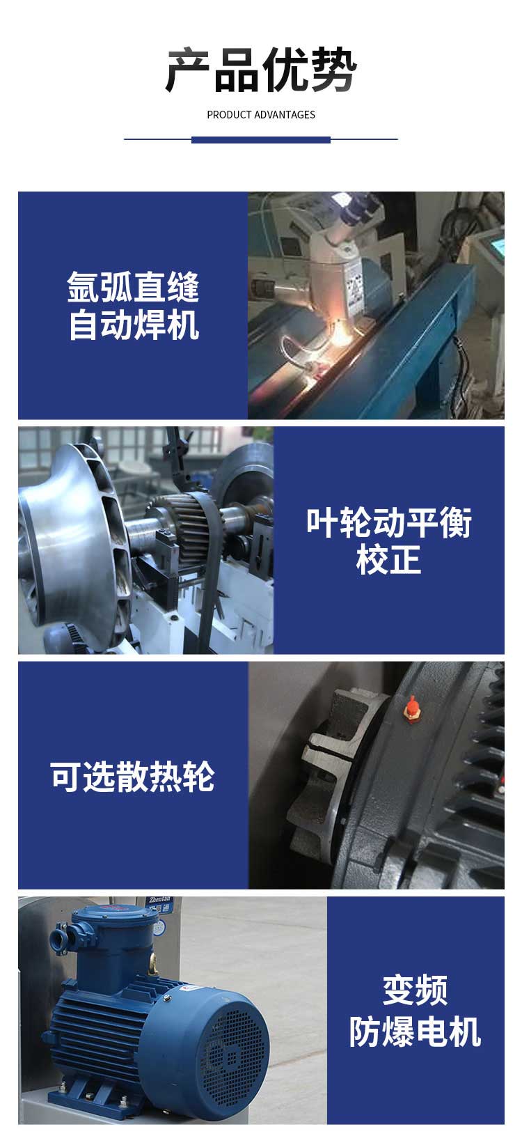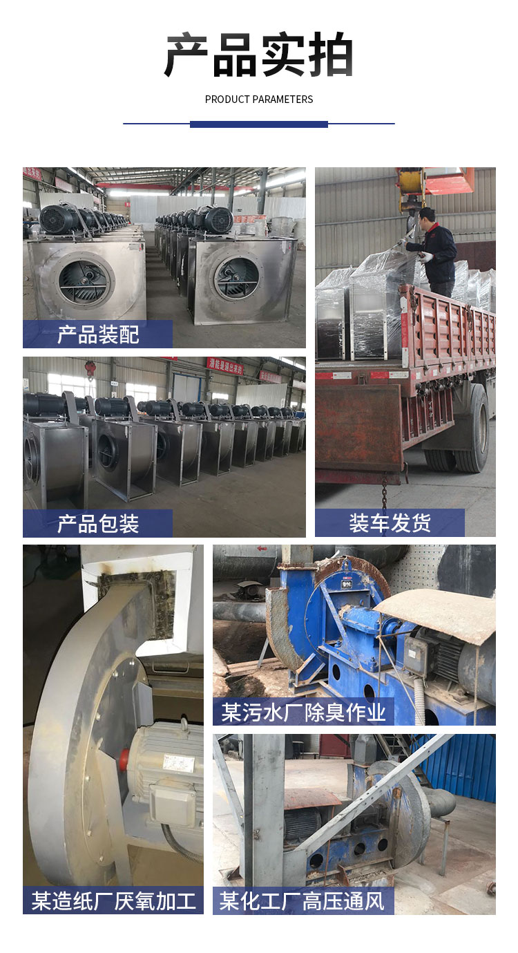 外殼及風(fēng)輪采用不銹鋼風(fēng)機(jī)材質(zhì)焊接而成,耐高溫,耐酸堿、防腐蝕