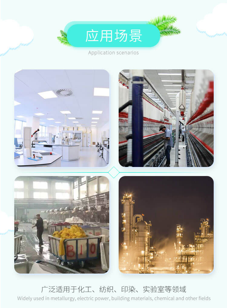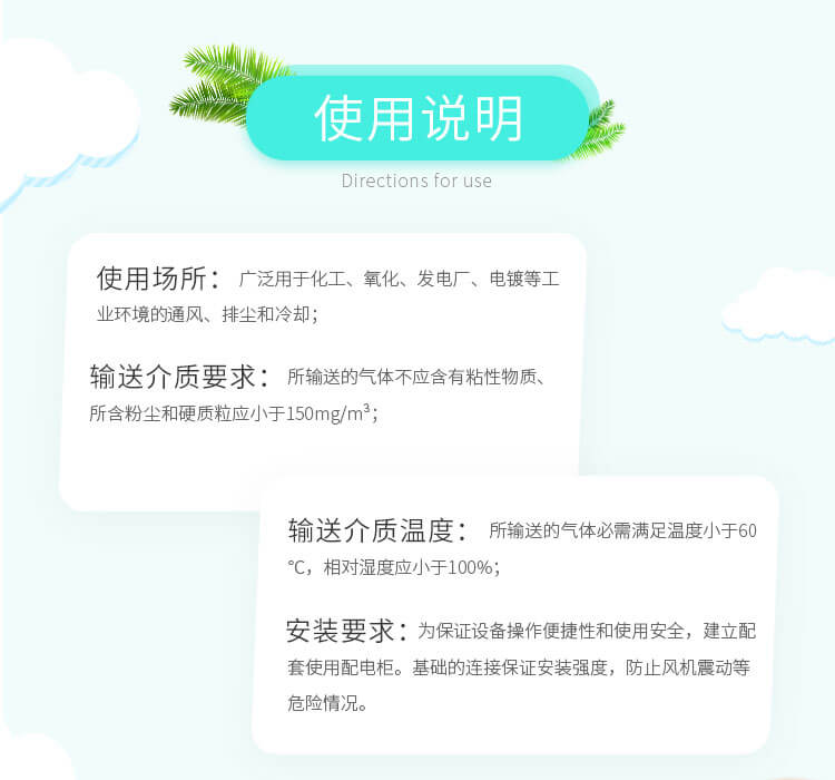 用于化工廠、紡織、電鍍、實驗室等場所排送含有一定濃度的酸、堿、鹽等腐蝕性氣體,也可以作為一般工廠的建筑物通風換氣用