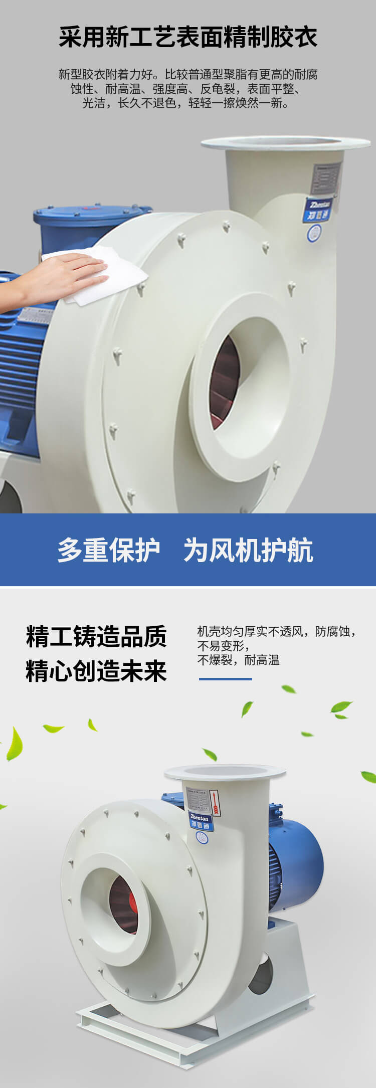 適用于化工、紡織、電鍍、實(shí)驗(yàn)室等場所排送含有一定濃度的酸、堿、鹽等腐蝕性氣體,也可以作為一般工廠的建筑物通風(fēng)換氣用