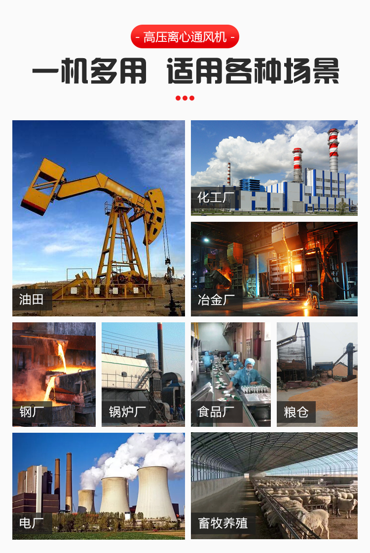 一般用于鍛冶爐、玻璃、陶瓷、電池、無線電等行業(yè)高壓強(qiáng)制送排風(fēng),糧食、飼料、礦粉等加工行業(yè)的物料輸送,紙箱機(jī)械設(shè)備、鋼化玻璃設(shè)備等配套使用。