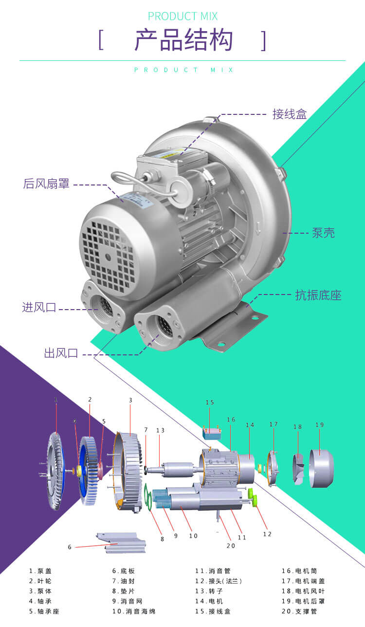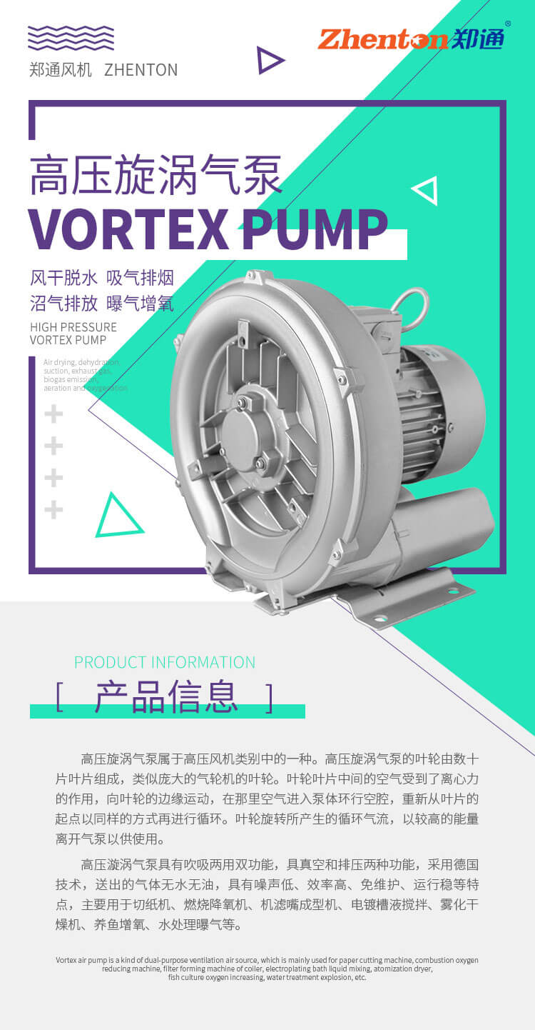 高壓漩渦氣泵具有吹吸兩用雙功能,具真空和排壓兩種功能,采用德國技術(shù),送出的氣體無水無油,具有噪聲低、效率高、免維護、運行穩(wěn)等特點,主要用于切紙機、燃燒降氧機、機濾嘴成型機、電鍍槽液攪拌、霧化干燥機、養(yǎng)魚增氧、水處理曝氣等。