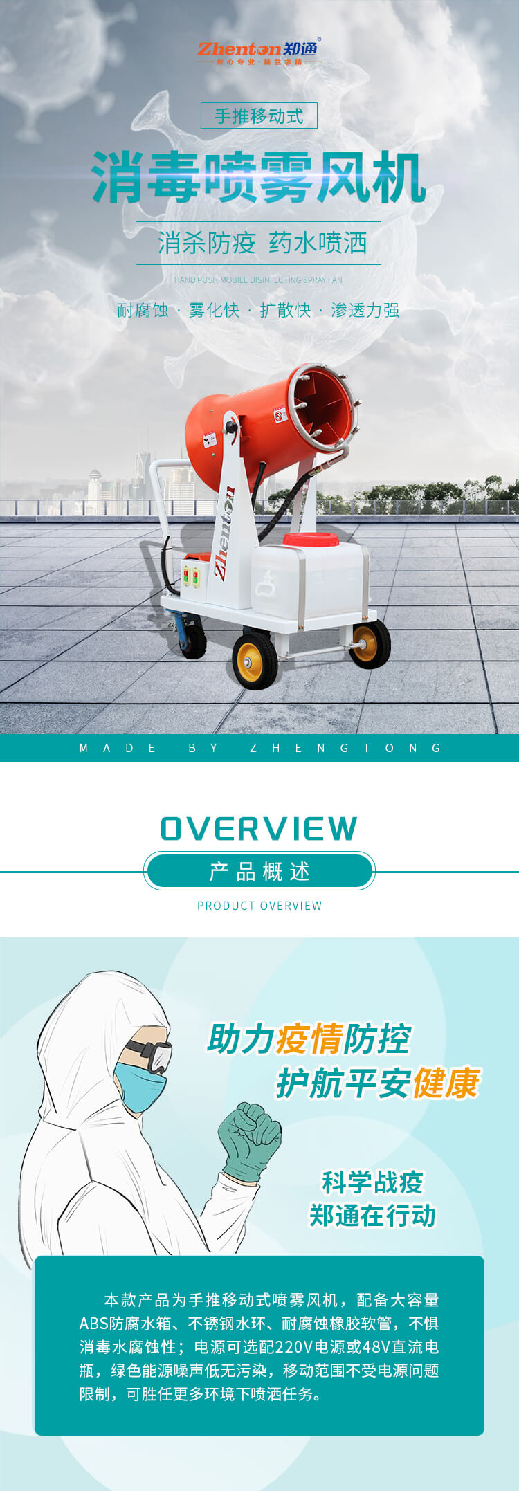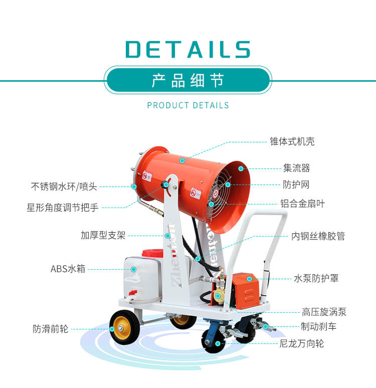 配備大容量ABS防腐水箱、不銹鋼水環(huán)、耐腐蝕橡膠軟管,不懼消毒水腐蝕性;電源可選配220V電源或48V直流電瓶,綠色能源噪聲低無污染,移動(dòng)范圍不受電源問題限制,可勝任更多環(huán)境下噴灑任務(wù)。