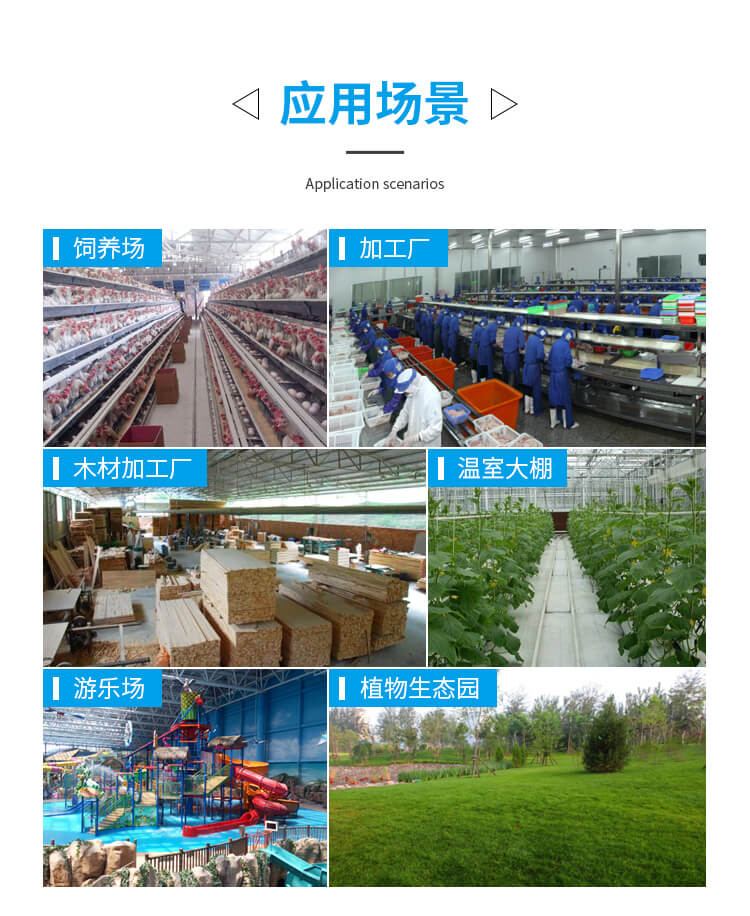 適用于畜牧養(yǎng)殖、花房溫室、廠房崗位降溫、室內(nèi)降溫等。