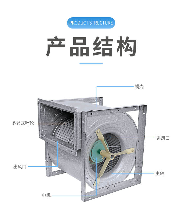 外轉(zhuǎn)子電機直聯(lián)雙進(jìn)風(fēng)通風(fēng)機,前傾多翼葉輪、低噪音。