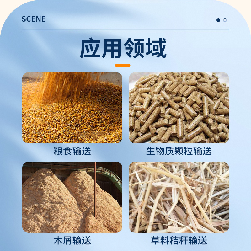 糧食輸送、生物質(zhì)顆粒輸送、木屑輸送、草料秸稈輸送、紙屑輸送