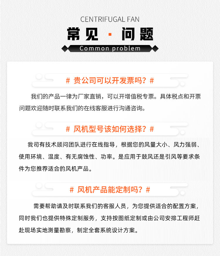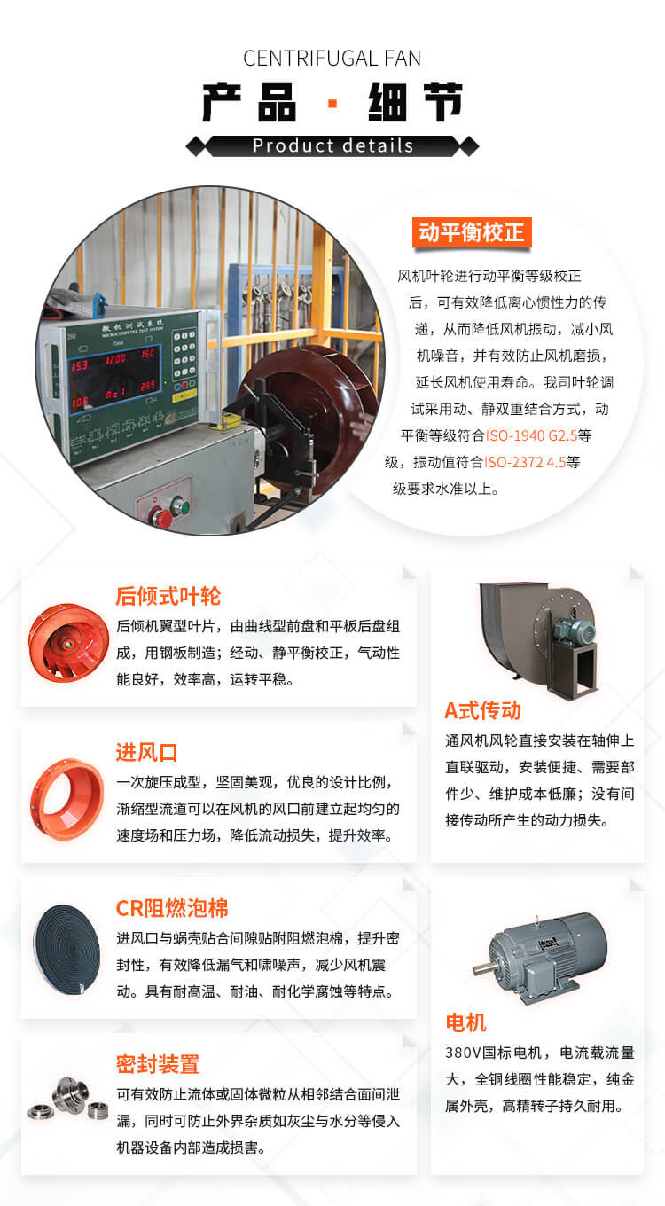 此款風機屬于中、低壓高效率離心通風機,后傾葉片、運行平穩(wěn)、效率高、堅固耐用等特點。