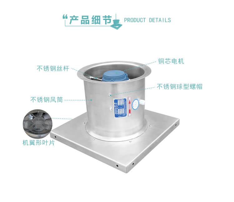底座及風(fēng)筒采用優(yōu)質(zhì)鋼板,風(fēng)帽采用玻璃鋼精工制作而成。