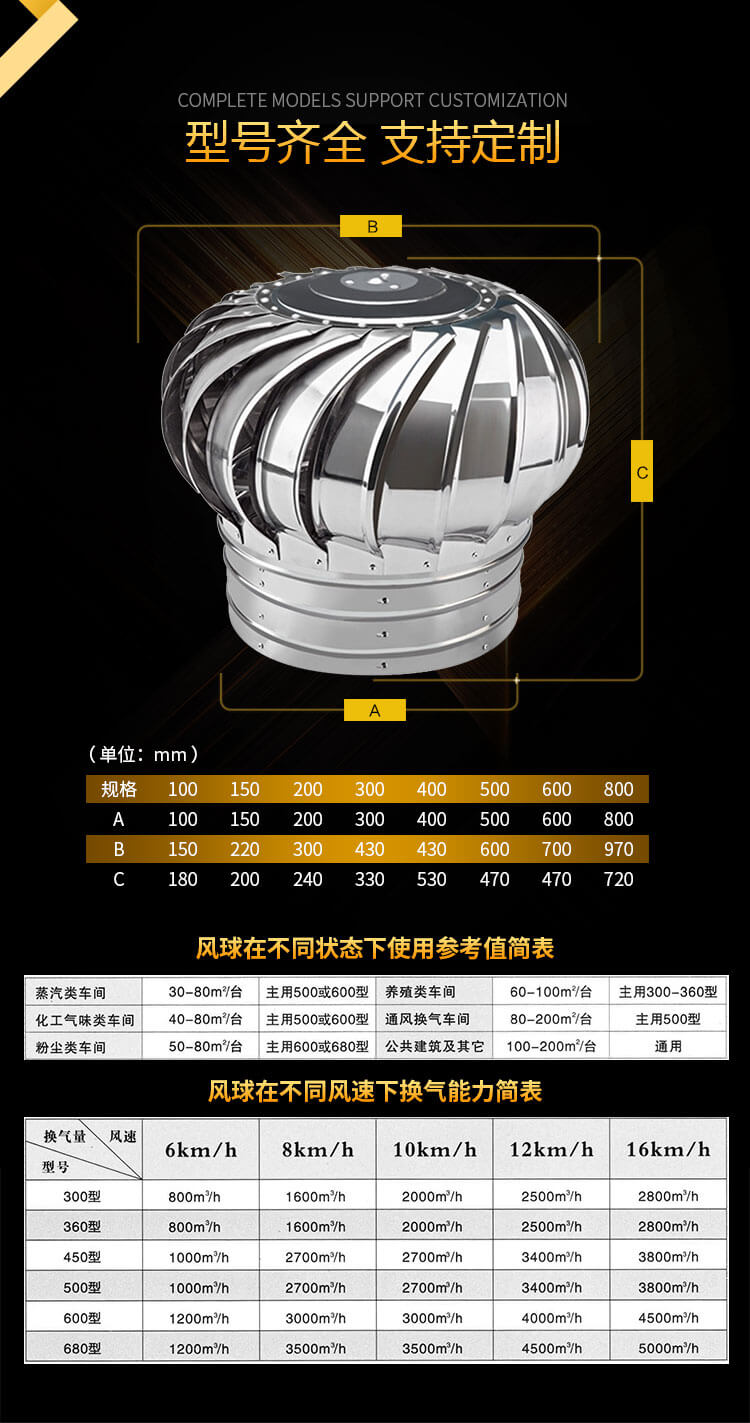 不銹鋼無動力風(fēng)球適用于工廠、車間、廚房、餐廳、倉庫、醫(yī)院等的通風(fēng)換氣。