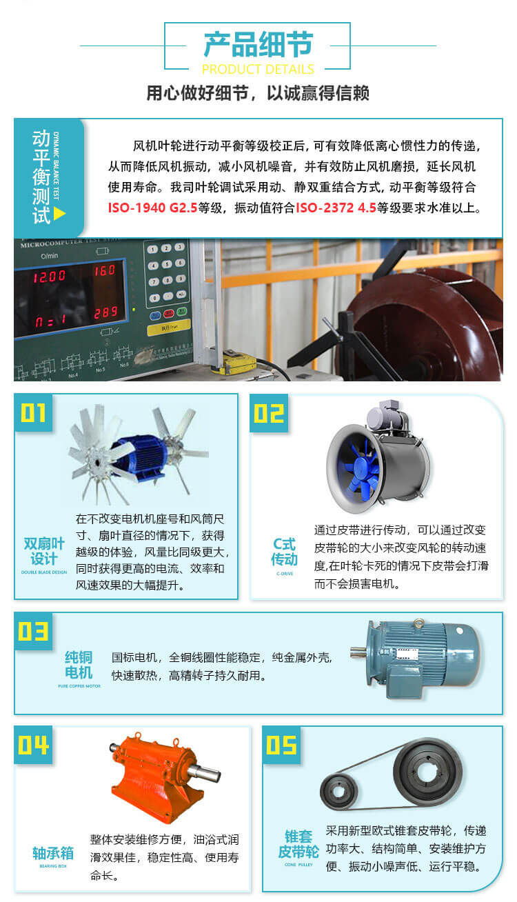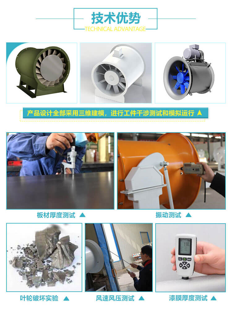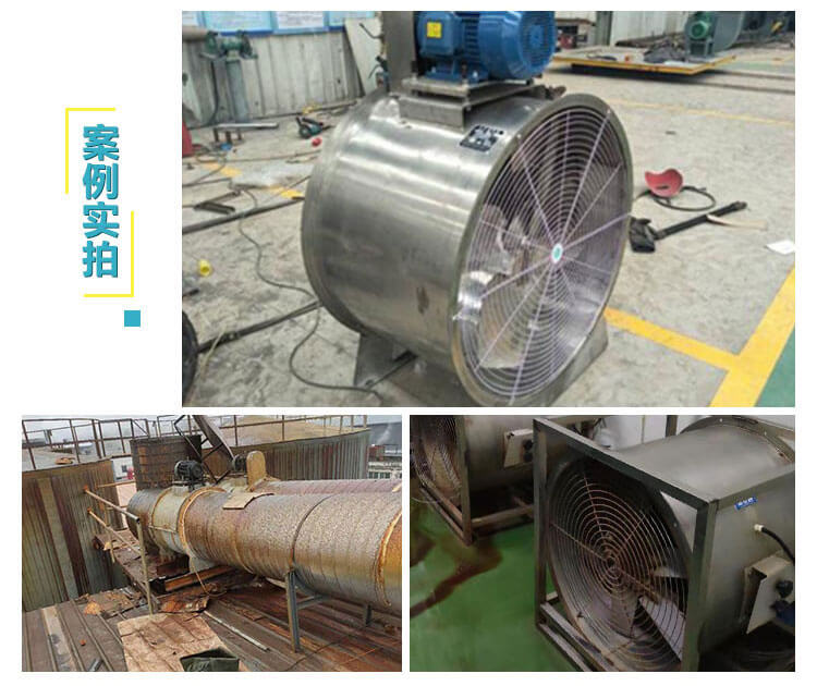 長(zhǎng)的排氣管道內(nèi)間隔串聯(lián)安裝,以提高管道中的風(fēng)壓。通過(guò)通風(fēng)機(jī)的氣體應(yīng)無(wú)腐蝕性及顯著粉塵,其溫度不得超過(guò)45°C。