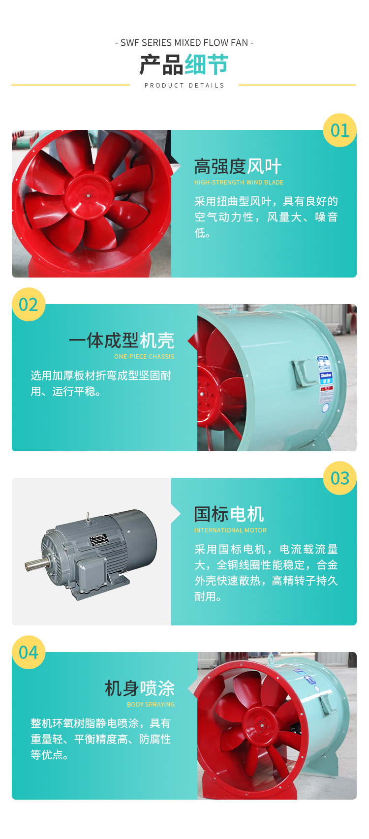 該風(fēng)機是兼?zhèn)漭S流風(fēng)機風(fēng)量大和離心風(fēng)機風(fēng)壓高兩者優(yōu)點的新型風(fēng)機