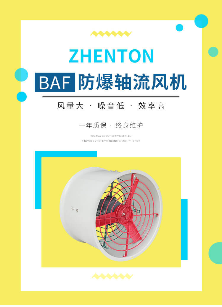 BAF防爆軸流風(fēng)機(jī)適用于ⅡB級T4組及以下級別、組別的爆炸性氣體混合物(1區(qū)和2區(qū))場所,作為廠房、倉庫通風(fēng)換氣或加強(qiáng)暖氣散熱之用