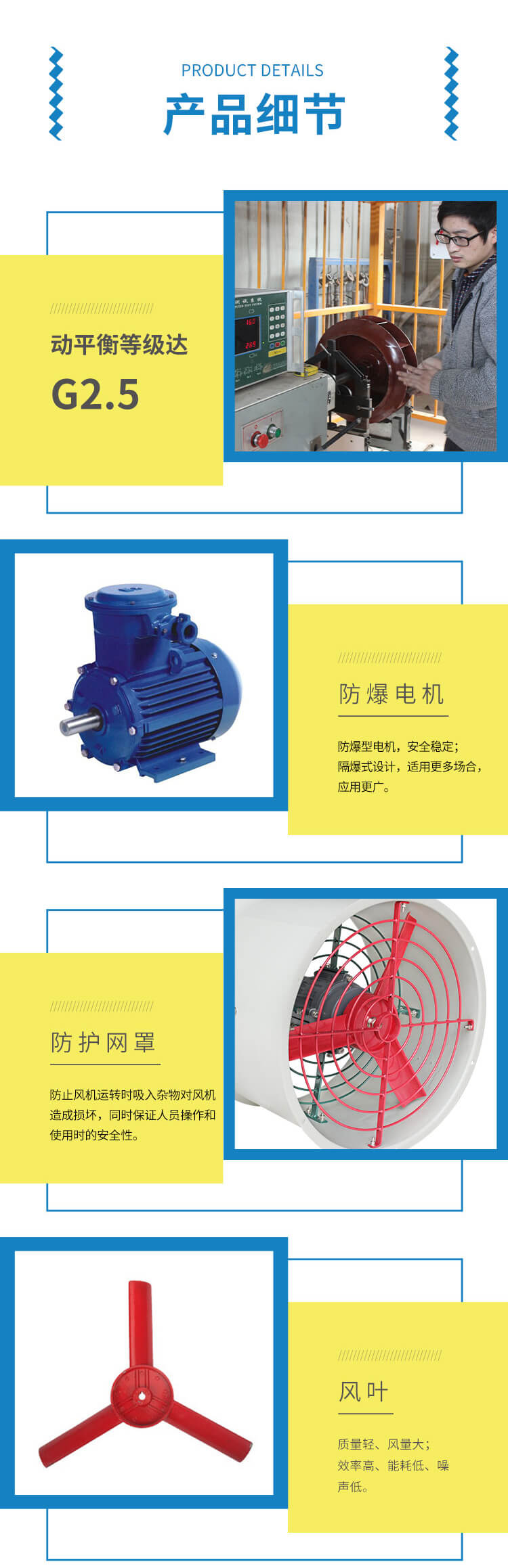 BAF防爆軸流風(fēng)機(jī)由防爆電機(jī)、風(fēng)葉、風(fēng)筒等部分組成,葉片由鋁板制成,風(fēng)筒用鋼板與型材加工焊接而成,電源引線用鋼管布線和電纜布線均可,殼外設(shè)有接地螺釘